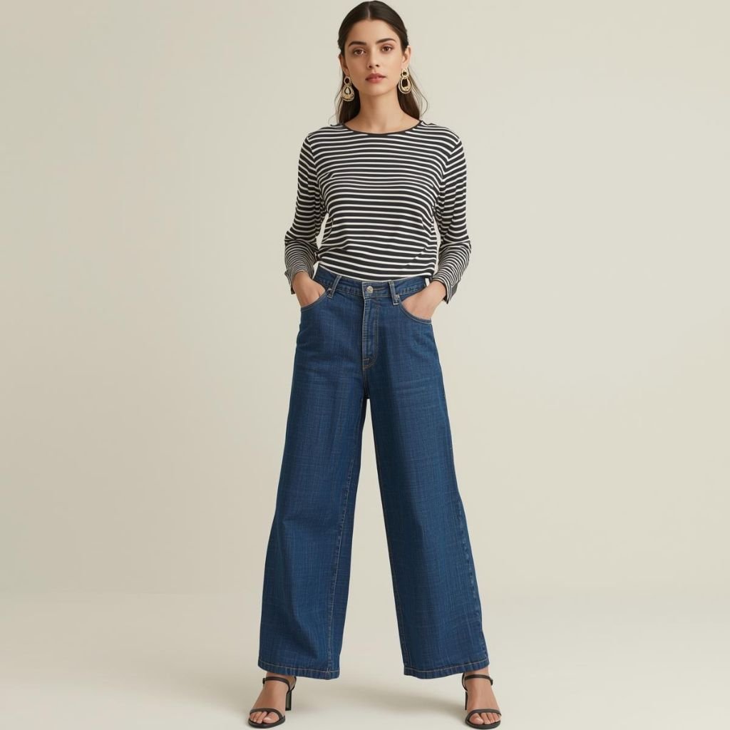 Women’s jeans palazzo pants: a new definition of modern fashion.